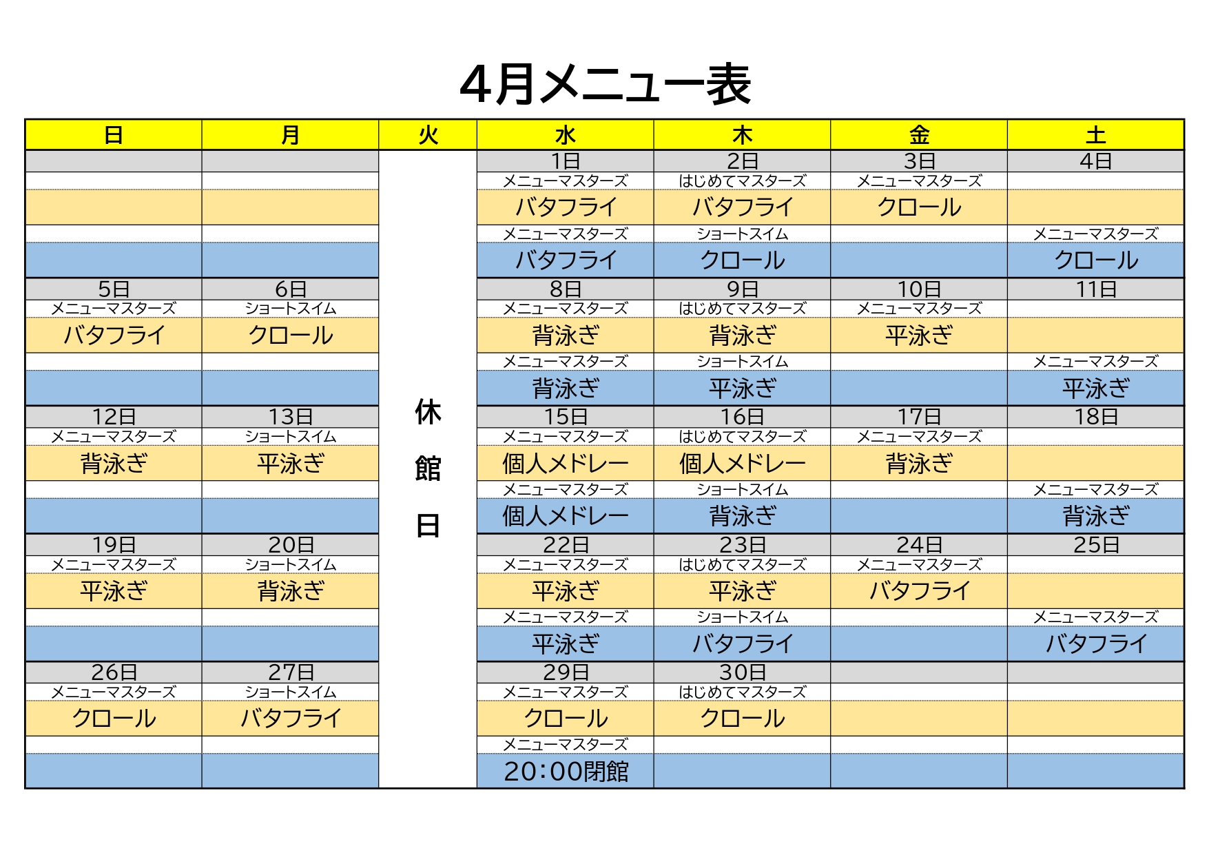 4月 プールメニュー表のご案内 お知らせ,その他,フィットネス 2026年3月30日 いつもパウスポーツクラブをご利用いただきありがとうございます。 いよいよ春到来ですね!! 花粉に負けず楽しく泳ぎましょう☆彡 ↓↓↓↓↓4月メニュー表↓↓↓↓↓